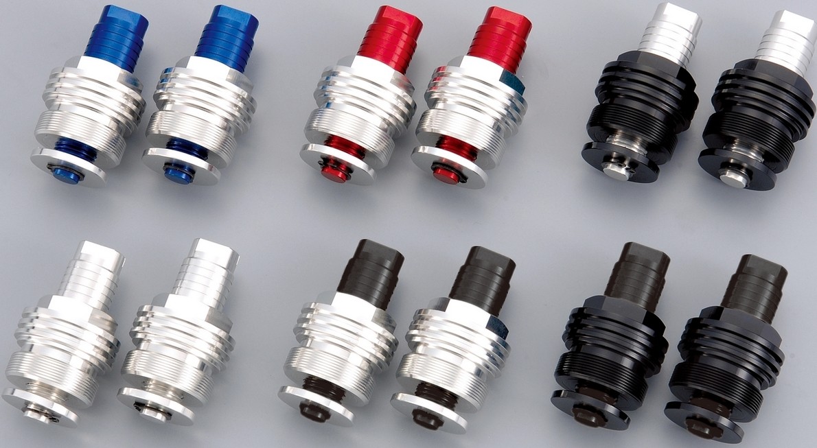 そこでEfficient Sportsイニシャルアジャスターを装着する事により、フロントフォークのエアー圧とプリロードを容易に変更でき、微妙で絶妙なセッティングが簡単に出来ます。
