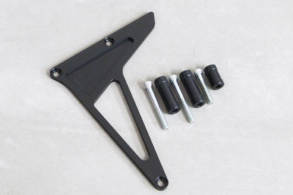 高強度アルミ材をベースにNCマシニングセンターで削り出した高精度スプロケットガード。ノーマルパーツと交換する事により、若干の軽量化とドライブスプロケット周辺のメンテナンス性が向上する。コワースバックステップキットと同時装着することにより、メカニカルな存在感をアピール。