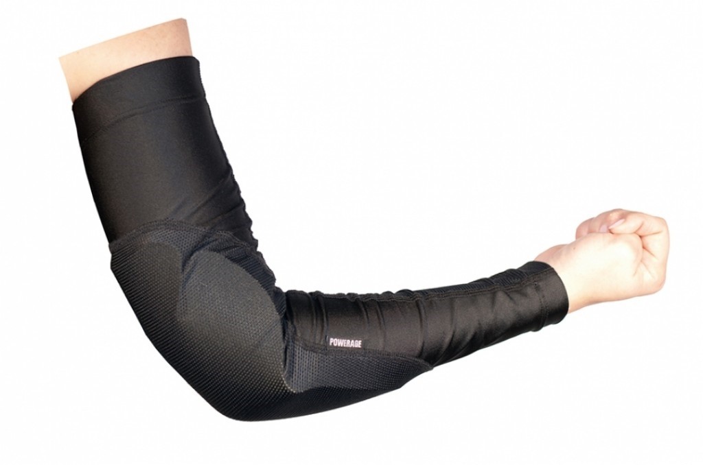 アームカバーと同様、腕を通すだけで装着完了!やわらかな PORON®XRD®が肘を優しく包みます。