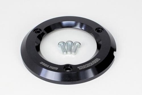 アルミ削り出しのソリッドイメージを強調するエッジの効いたデザインで、右クランクケースカバー部を引き締めます。