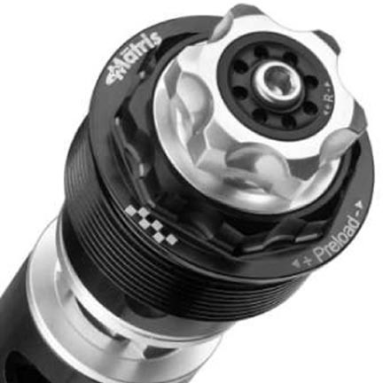 ・トップキャップのプリロードアジャスター部にはスラストベアリングを採用、180度(0.5mm)ごとにクリック感。