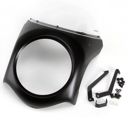 クラシックスタイルを演出し、空力特性も向上させるレトロフェアリング。取り付け車両に合わせた専用形状、専用マウントステーによりコンプリート車両の様な、フィッテイングを実現。汎用タイプスクリーンとは一線を画す抜群のスタイルとウインドプロテクションを発揮。Retro PuigセミフェアリングはドイツのTUVによってテストされており、ABE 39524認証も取得しています。