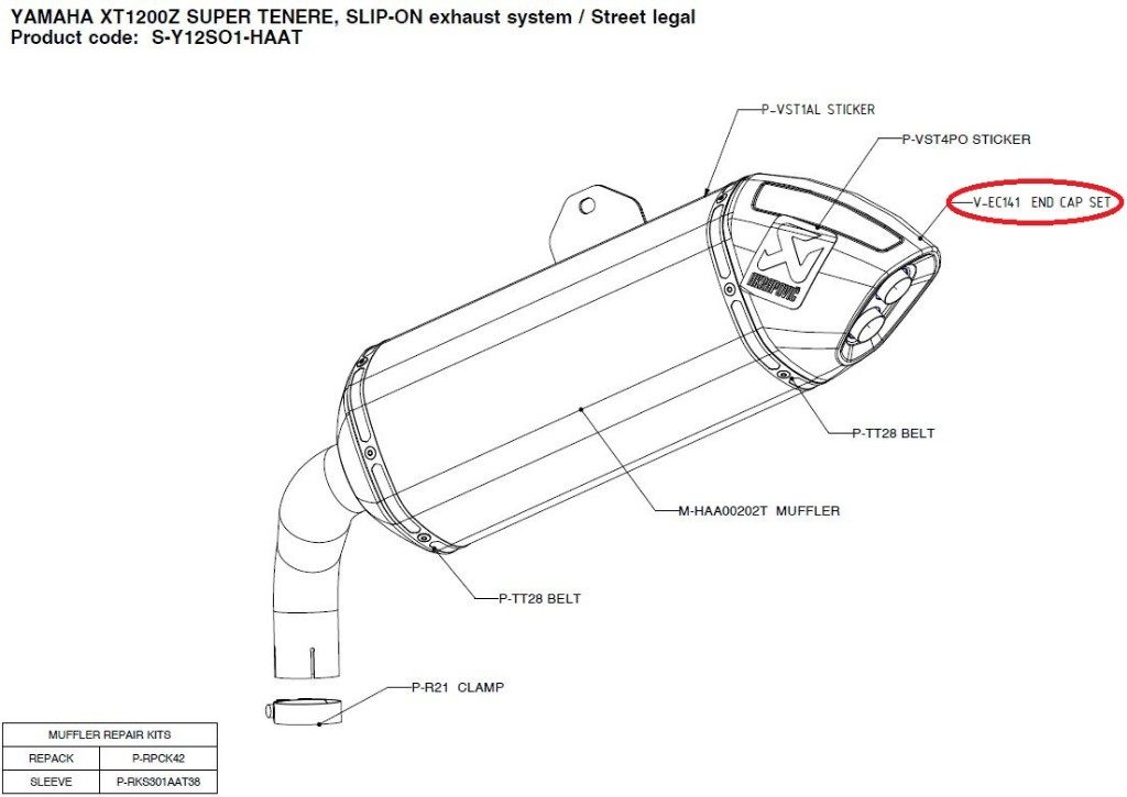 AKRAPOVIC アクラポビッチ 【リペアパーツ】V-EC141 end cap set XT1200E XT1200Z YAMAHA ヤマハ マフラーエンドキャップ マフラー