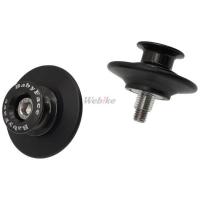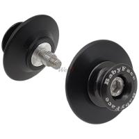 左右に振り分けられたサイレンサーやレーススタンド使用時にスイングアームへの干渉を考慮し、大径の樹脂パーツとアルマイトを施したアルミパーツの2PC構造にし横方向の張出しを少なくしました。