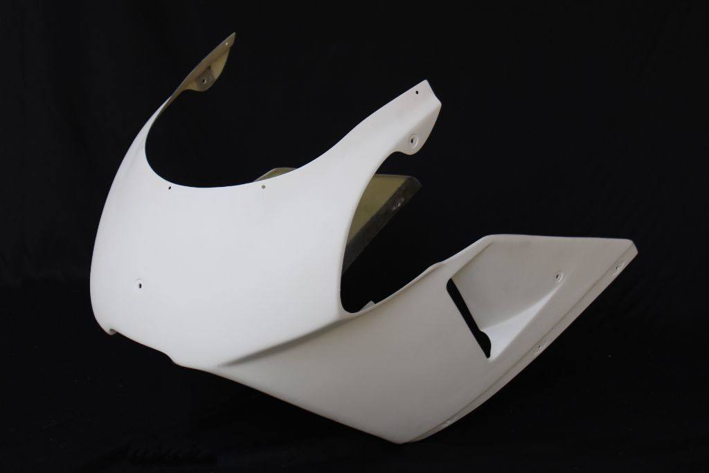 This product along with our NSR500V lower、 part number BPFT-9042、 air duct BPCX-9042、 and windscreen SCRE-0172、 comprise the complete front fairing ( part number BPFS-0193) These panels can be used for replacements by the few lucky owners who already have an NSR500V or to owners of motorcycles looking for something different and this fairing gives customizers a starting point to make their dreams come true. The size is such that this fairing can be used on most 400-750 cc model sports bikes and it is even rumoured that KTM ran the prototype RC8 with an NSR500V fairing to hide its identity from prying eyes. See also part number BPCU-9042 for carbon version.