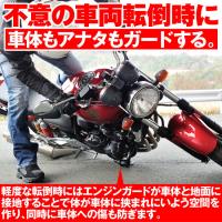 立ちゴケ等の軽度な転倒に対し、エンジンやカウルのダメージを軽減します。