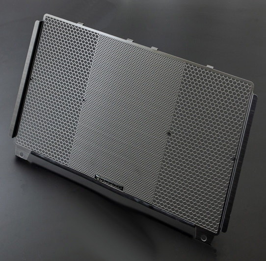 走行中にフロントタイヤが巻き上げる飛び石や、虫などの異物からラジエターを保護しながら冷却効率を最大限に維持させるラジエターコアプロテクター。