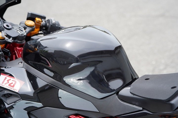 本商品は万が一の転倒によるフューエルタンク保護及びタンクエンド部分形状変更によるニーグリップ向上の為に製作いたしました。