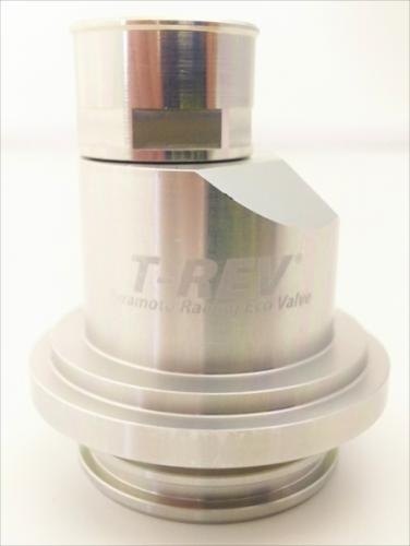 その上オイルセパレーターを装備、さらに、ブリーザーから排出されるブローバイガスを流体力学上の渦を利用して流速を上げ、スムーズに排出されるようにT-REV内部に『スパイラルライン』を施し、さらにリードバルブ面を3面にすることによって1面当たりの力を分散し、よりスムーズにブローバイガスを排出する構造になっております。