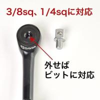 グリップを回して狭い場所でも早回し、従来のラチェットハンドルのように本締め、ソケット、ビットも使えるまさにオールインワンのラチェットハンドルです!