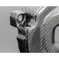 大胆に肉抜き加工を施したデザインがレーシーなイメージを強調すると同時に、綾織カーボン繊維の艶やかな光沢とがその存在感を主張します。
