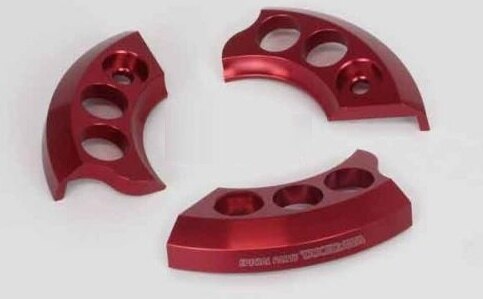 クランクケースプロテクターはアルミ材を精巧に削り出し、表面にカラーアルマイトを施しています。