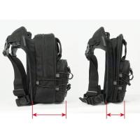 入り口から底部まで同じ厚みを確保したメインスペースは無駄なく荷物を収納できます。各機能をできる限り左右両用となるよう設計し、右足左足どちらでもお好みに合わせて着用可能です。