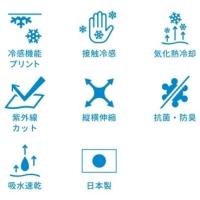 接触冷感の生地に冷感プリントを施すことで、気化熱・接触・プリントによる3つの冷感効果を発揮。