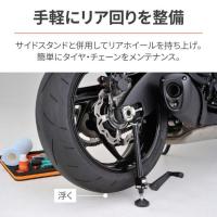 ホイール清掃やチェーン注油などの簡単なメンテナンスや、強風や地震などによるバイクの転倒防止対策としても役立ちます。