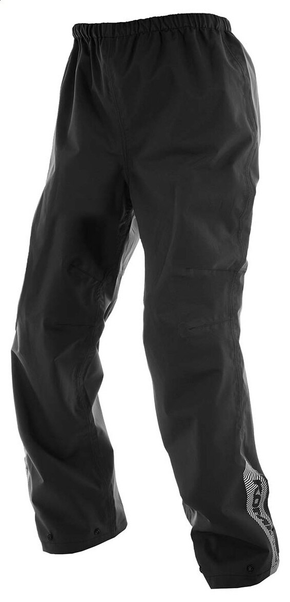 3レイヤー構造の高機能透湿防水生地を使用したシンプルなレインパンツ。