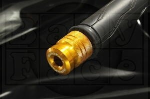 軽量なアルミ合金に各アルマイト 又は、振動対策用に重量のあるステンレス(SUS)を使用し、 Φ22mmショート、Φ30mmベリーショート、ショート、ロング、さらに先端にジュラコンをはめ込んだ大径Φ35mmロングの各種・各色を揃えています。