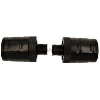 軽量なアルミ合金に各アルマイト 又は、振動対策用に重量のあるステンレス(SUS)を使用し、 Φ22mmショート、Φ30mmベリーショート、ショート、ロング、さらに先端にジュラコンをはめ込んだ大径Φ35mmロングの各種・各色を揃えています。