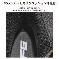・インナーには通気性と吸汗性に優れる 3D メッシュを使用。また、足首周辺に肉厚なクッション材を内蔵し、衝撃吸収と柔らかな履き心地を実現。