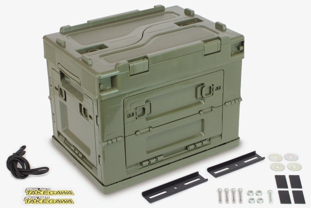純正キャリアやSP武川製リアキャリアに折り畳みコンテナ20Lを取り付けできる“キャリアコンテナセット20L”