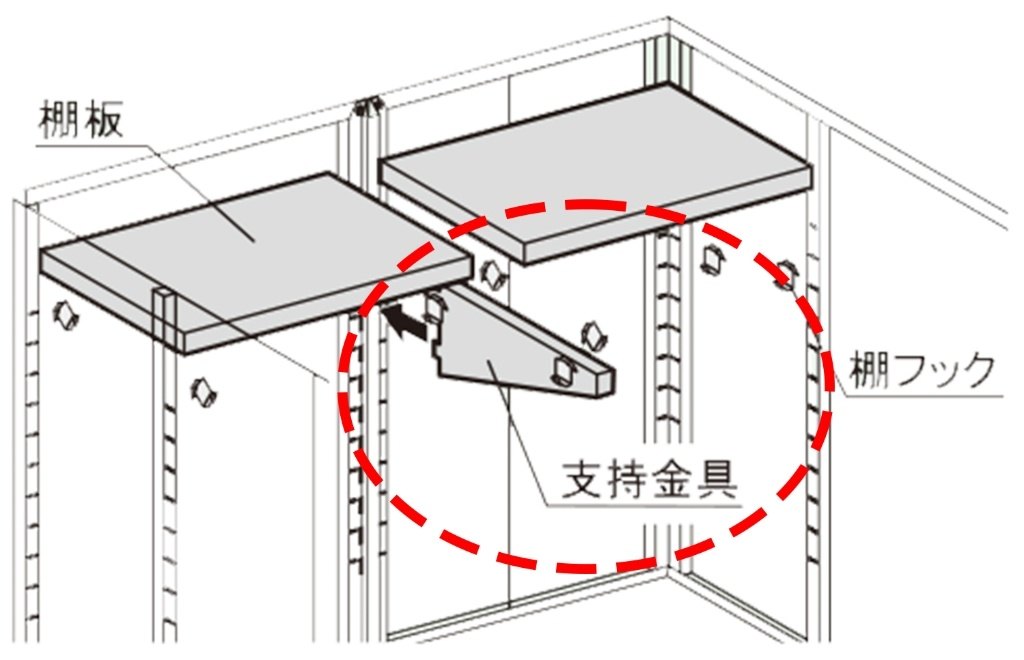 ※支持金具と棚支柱は同時に設置することはできません。