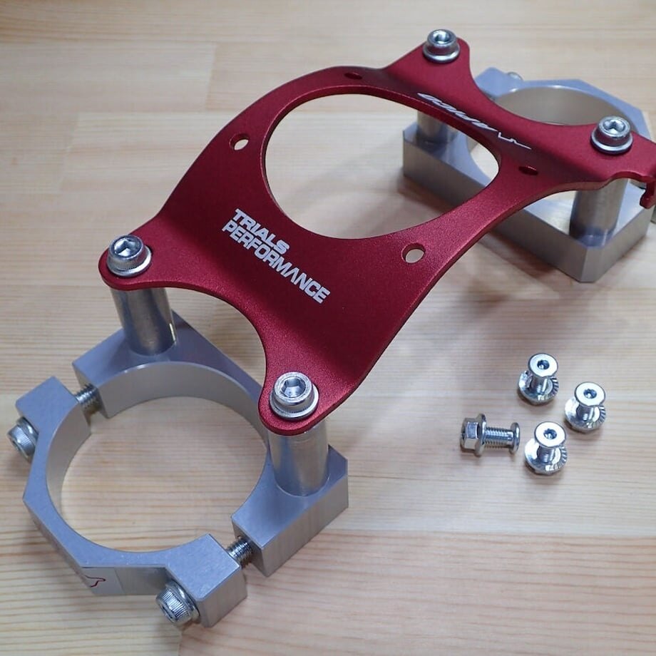 ダウンフェンダーセットとしてラインナップ予定でしたが、「純正アップフェンダーに組むので、フェンダーは不要。」「剛性が欲しいだけなので、スタビだけ欲しい。」「トライアルフェンダーは持っている。」という方も多いので別売にしました。