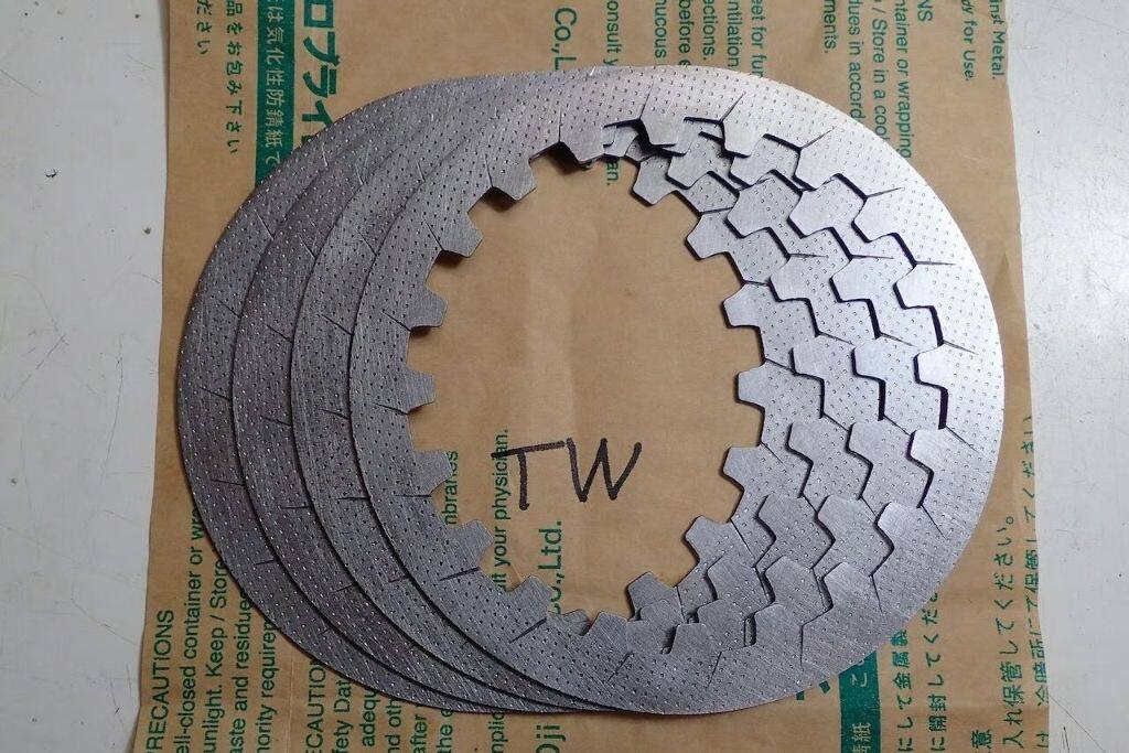 通常、フリクションディスクとクラッチプレートは同時交換しないと、すぐに滑り出しますが、この加工済みプレートだと、フリクションディスク2セット分以上使用出来ます。