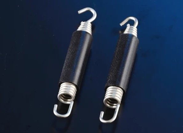 NITRO RACING製マフラーに付属するステンレススプリング及びブラックシリコン防振チューブのセット。