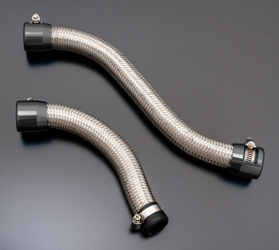 カラーアルマイトを施されたアルミECONO-FITと結合される「ステンレスメッシュチューブ」は、エンジン周りの圧倒的なドレスアップ効果と同時に、耐圧性と耐久性を向上させます。