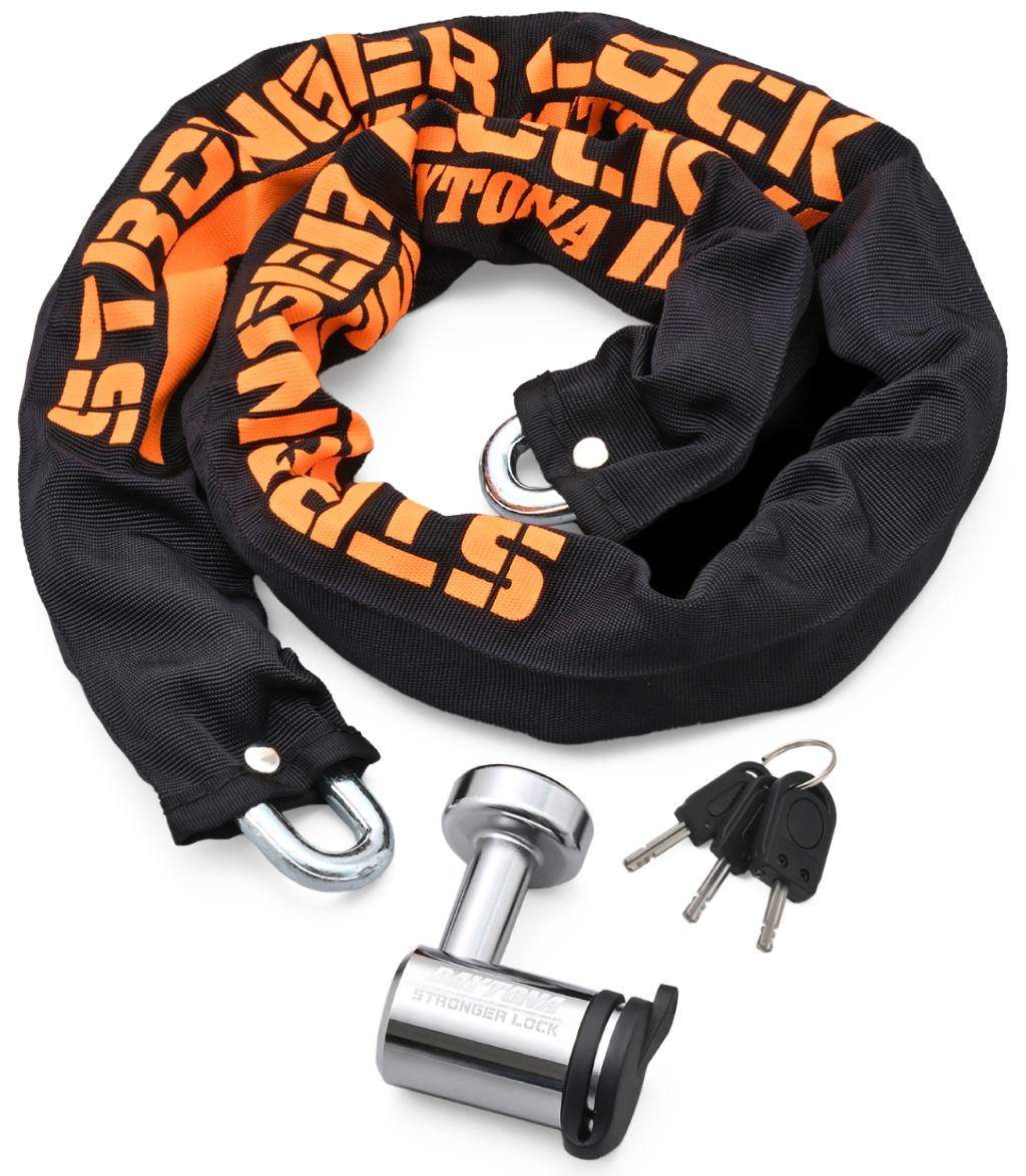 30mm幅Φ8mmの太いチェーンで愛車を護る。