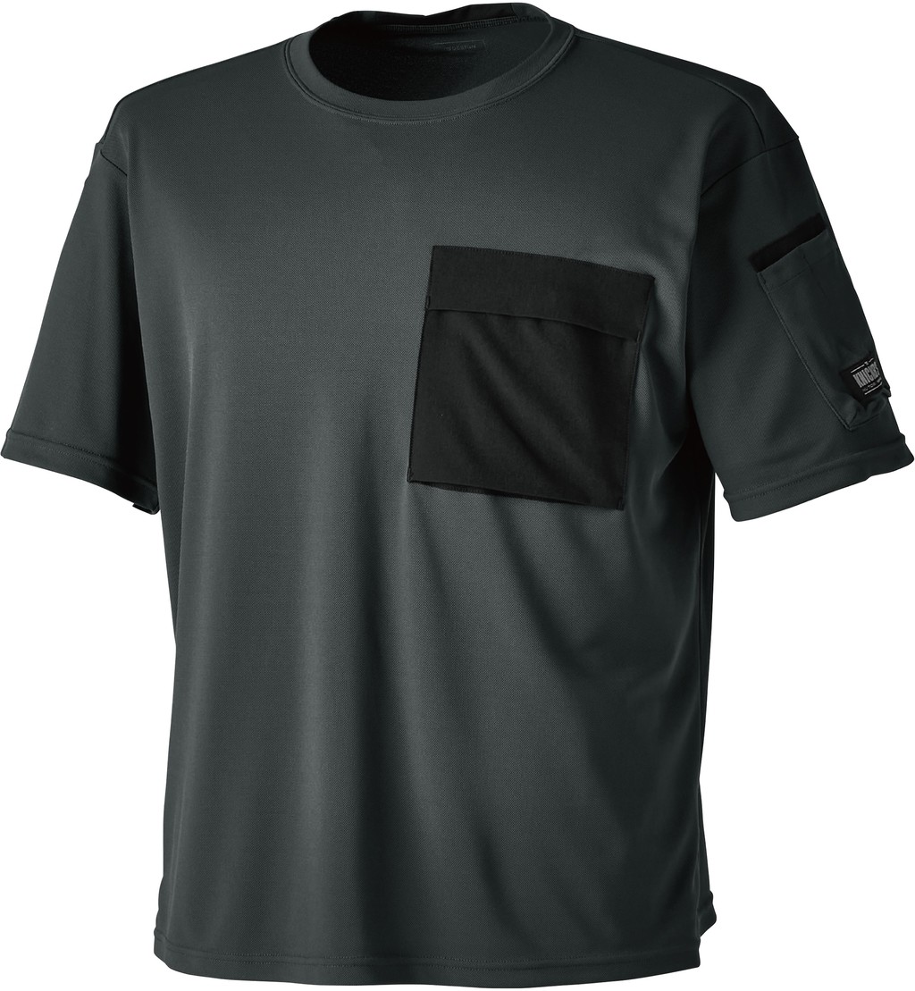 左袖にはペン差し用のポケット、両脇下に消臭テープ、襟後ろロゴプリント付き。