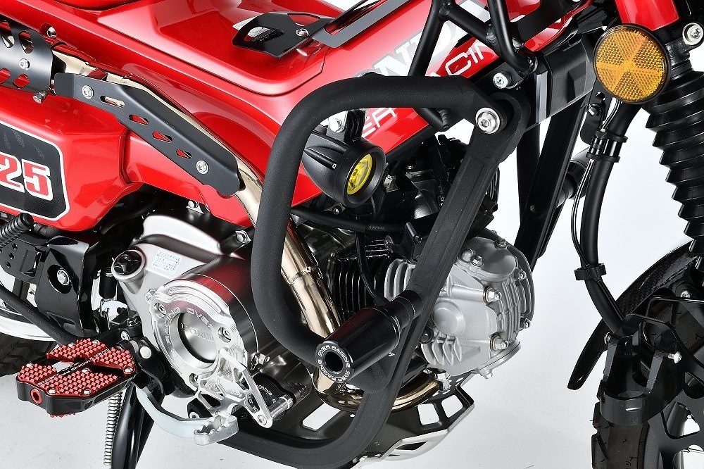 OVER製ダウンチューブに追加装着することで、保護性能と拡張性を向上させるパイプガード。