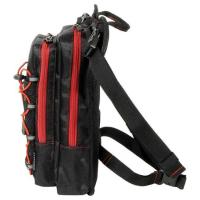 外側にはメッシュポケットとドローコードを備えペットボトルやグローブの保持に便利。