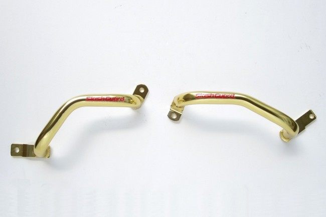 スラッシュガードは、材質がアルミ52Sを使用し軽量、強度面は、クランクケースとの間に5mmから10mmの衝撃吸収ゴムをはさみ、しっかり衝撃を吸収。