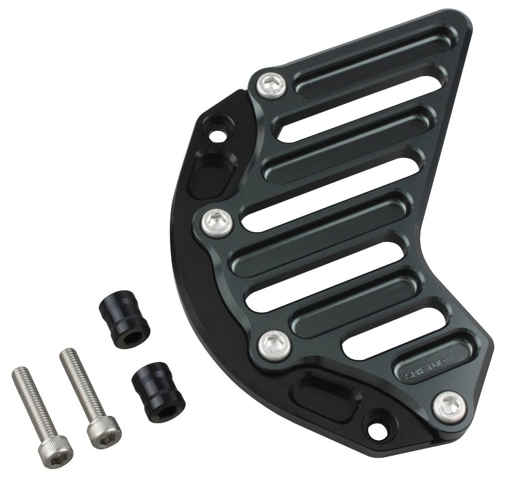 エンジン廻りのドレスアップパーツ、アルミ削り出しのスプロケットカバー