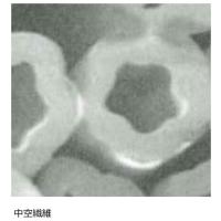 繊維の内部に空洞を持つ特殊な形状のポリエステル糸を使用。