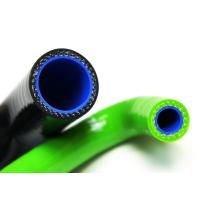 シリコンラジエターホースは、2種類のシリコン素材から形成されており、内部のシリコンホースにより冷却水の流動性能を向上させ、その上からファイバー繊維を編みこんだシリコンラバーで4重構造に補強されています。