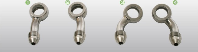 ノーマルブレーキホースに見られるように、バンジョーアダプターにひねりを持たせています。ビルドアライン ユニバーサルホースとバンジョーボルトとの組み合わせで、自由にホースを組むことができます。