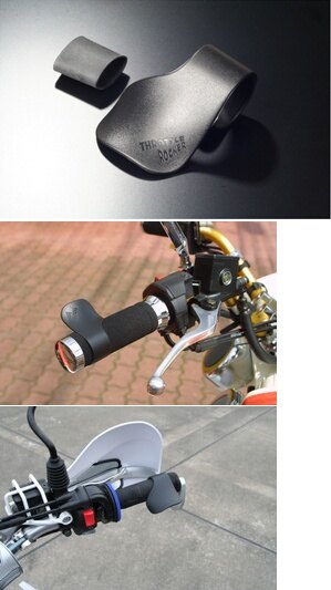 グリップを握らずに手のひらでスロットル操作が出来るスグレモノ。ロングツーリングやハイウェイクルージングなどが非常に快適楽チンになります。取り付けもグリップに巻きつけるように引っ掛けるだけの簡単仕様でいろいろな車種に取り付けできます。一度使うと止められなくなる便利アイテムです。また、ウインターグローブと併用すると、硬いグローブを握りこまずに済むので疲れません。