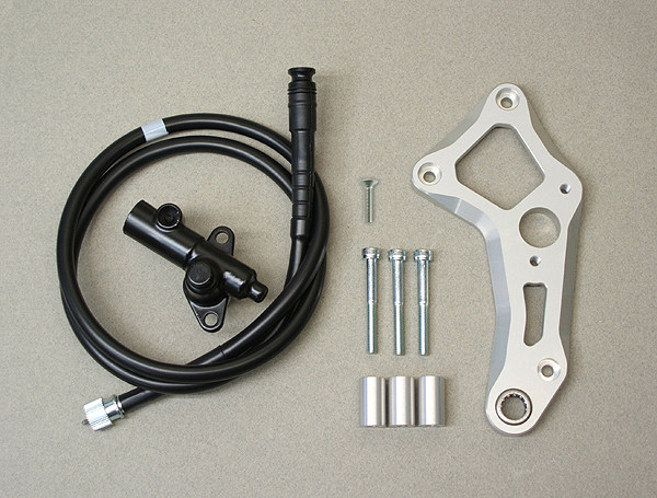 フロント周りのカスタム等により、フロントホイールのスピードメーターギヤが使用できなくなった車両に対し、ドライブスプロケット部分からスピードメーターケーブルを取り出すキットです。