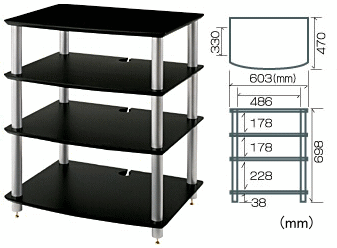 HF04BS 棚板ブラック支柱シルバーオーディオラック オプション支柱長変更可 Sound Magic サウンドマジック