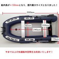 サイズ(cm): 全長333・全幅 170・チューブ径44・甲板長245・甲板幅82 アルミシート幅102