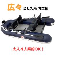 2馬力限定、大人3名〜4名の使用を前提にしたサイズです。大人4名での乗船も楽々で、前後で2名使用では完全余裕のサイズとなります。