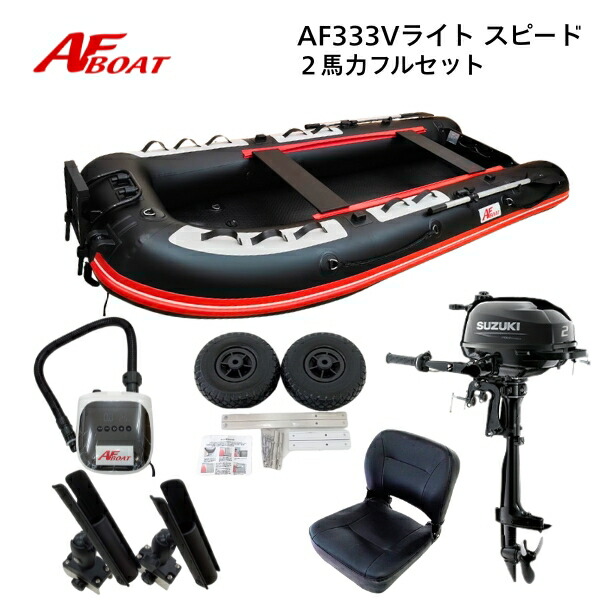 AFボート AF333Vライト・スピ―ド ブラック 2馬力セット スズキ DF2 ボート 2馬力 船外機 船検不要 免許不要