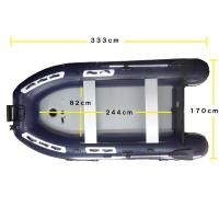 サイズ(cm): 全長333・全幅 170・チューブ径44・甲板長245・甲板幅82 アルミシート幅103