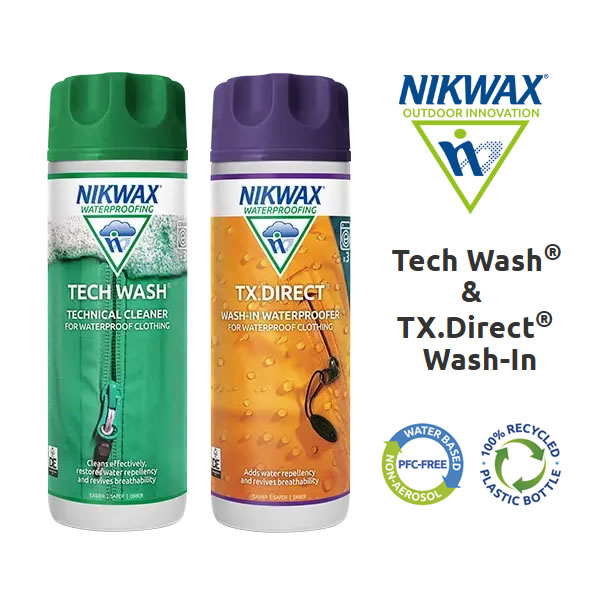 | 透湿防水ウェア用撥水液 新品の時は玉のように水滴を弾いたウエアも汚れたり、洗濯を繰り返すうちに撥水性が 徐々に低下してきます。撥水性が低下したウエアーは透湿性のあるウエアーの通気を 妨げ、ウエアの内側に水分が結露する事によって、結局その下に着ているインナーを 濡らしてしまいます。アウトドアで使用するウエアをいつでも快適に着用するために、撥 水性が落ちてきたらNIKWAX TXダイレクトウォッシュインで撥水性を取り戻しましょう。 全自動洗濯機や手洗いでのご使用ができます。 Gore-Tex,SYMPATEX,等の透湿防水生地にも安心してお使い頂けます。 | ||||||||||||||||