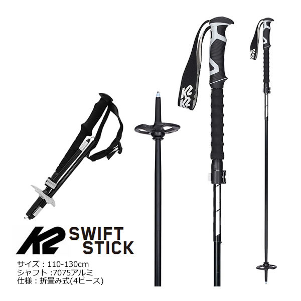フリーライドスキー ストック K2 スキーポール SWIFT STICK 110-130cm 折畳み&伸縮式 ツアースキー (23-24 2024)