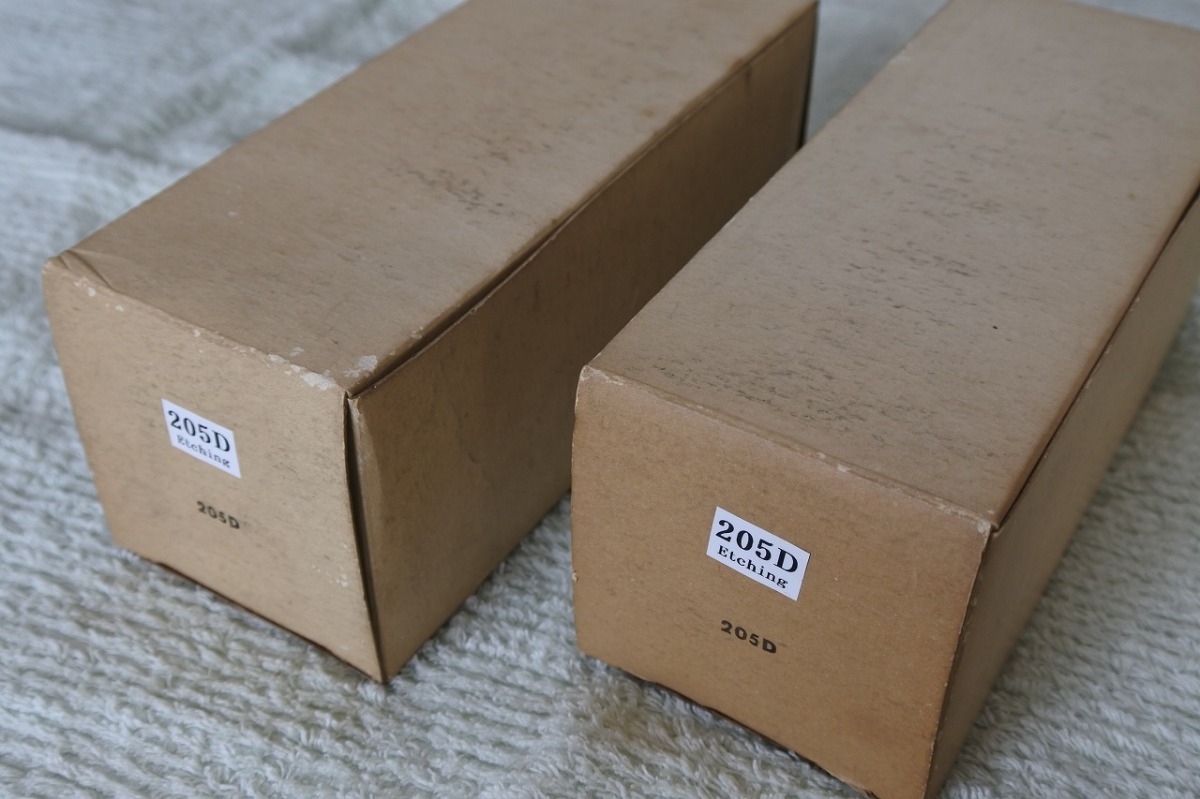 Western electric 205D 直熱3極管。人気のラダーグリッド、ガラスエッチングタイプです。300B以前のウエスタン社出力管。300Bよりも小出力ですが、音色では勝るとも劣らない物が有ります。金額はぺア分。