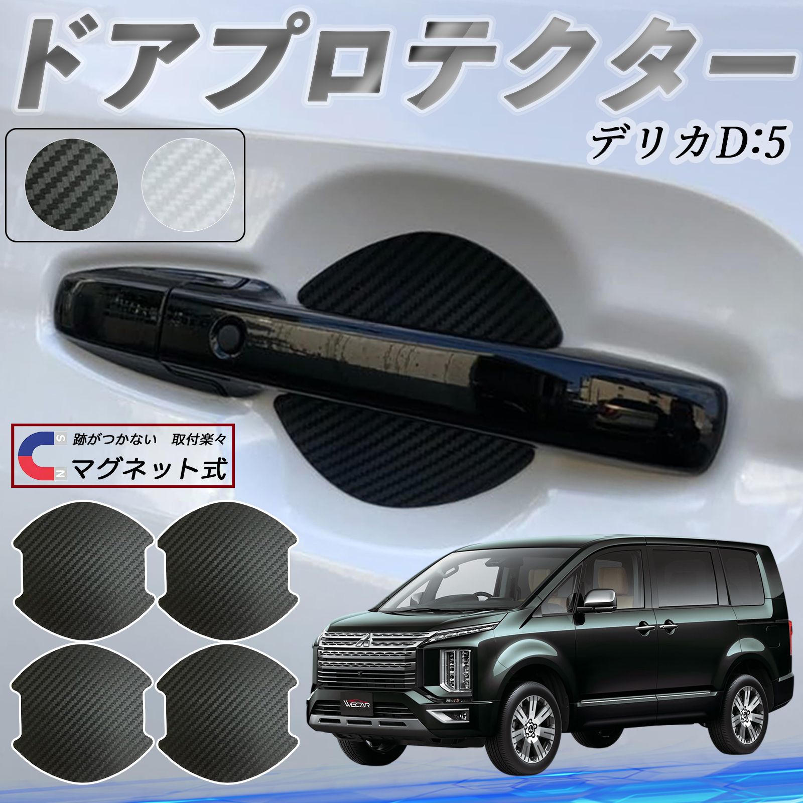 三菱 デリカD:5 ドアハンドルプロテクター マグネット 保護フィルム 車 傷防止 取扱説明書 カーボン調 4枚セット WeCar