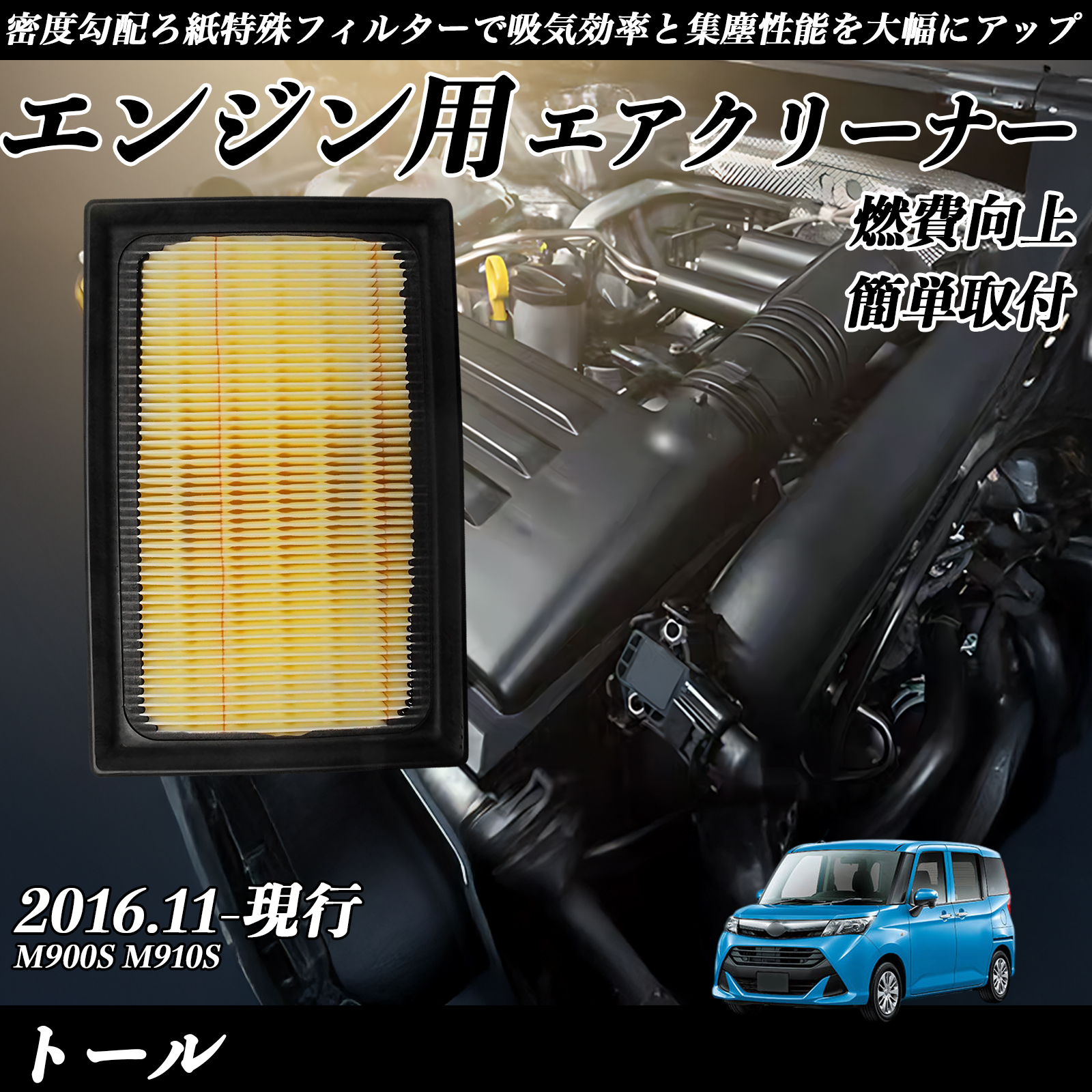 トール 2016.11-現行 純正互換品番 17801-21060 エアフィルター エアクリーナー エアーフィルター エンジン WeCar